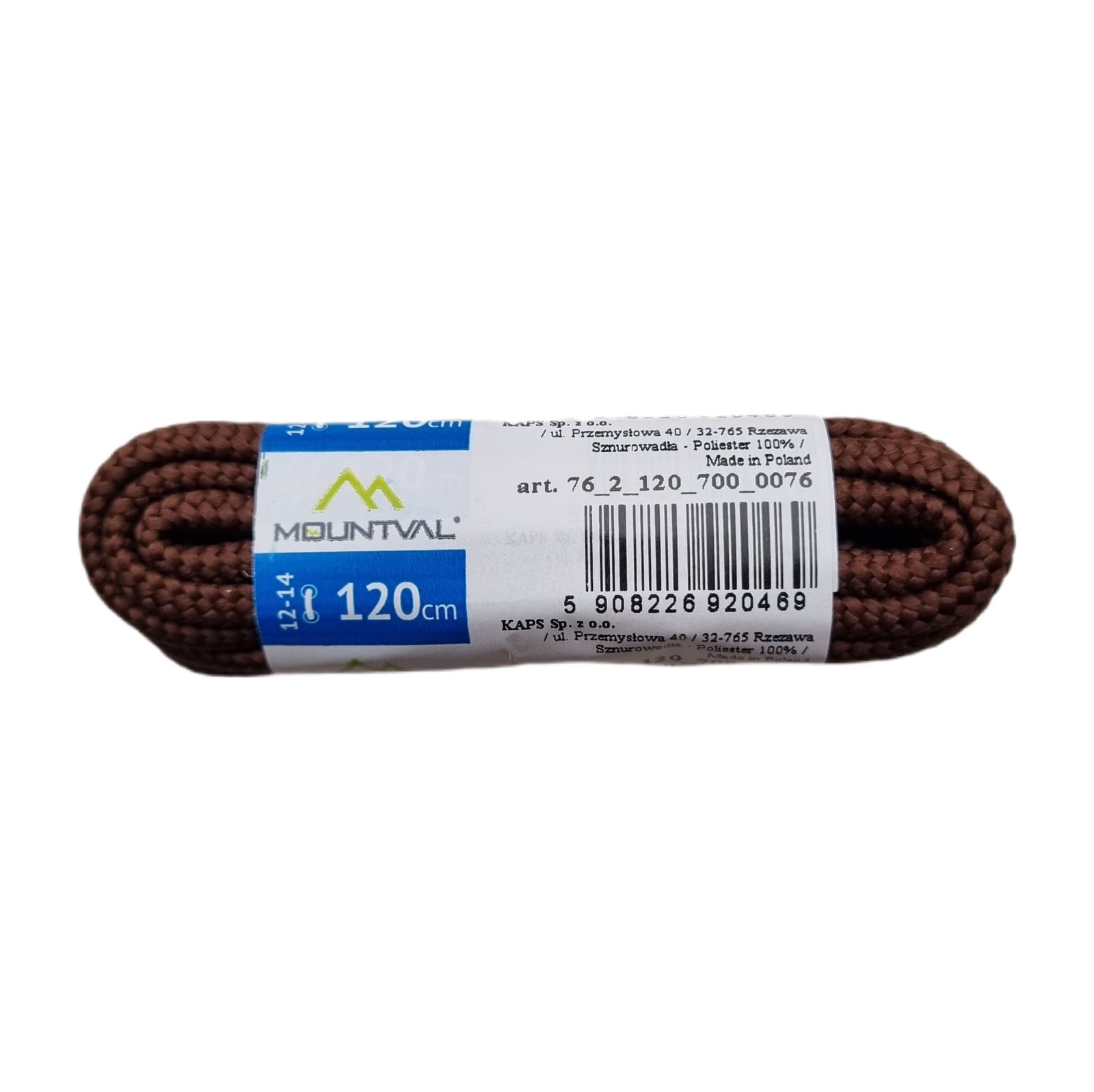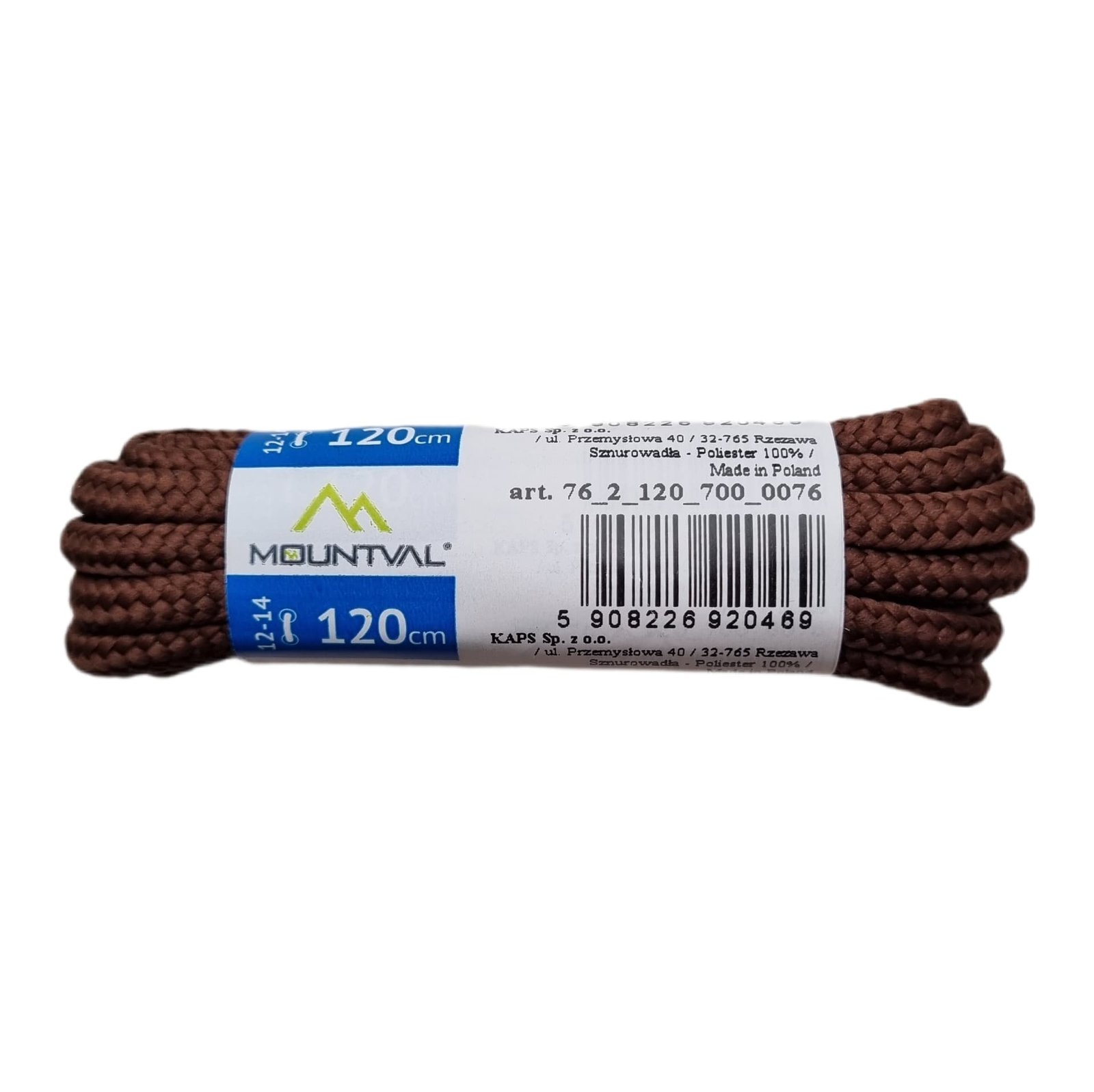 Kaps Mountval – aukštos kokybės 120 cm ilgio rudi batų raišteliai, skirti Jūsų avalynės atnaujinimui ir patikimumui. Pagaminti iš 100% poliesterio, šie apvalūs batraiščiai pasižymi išskirtiniu tvirtumu, nesitampo ir puikiai dera prie klasikinės bei lauko avalynės. 🚚 Greitas pristatymas per 1–3 darbo dienas!